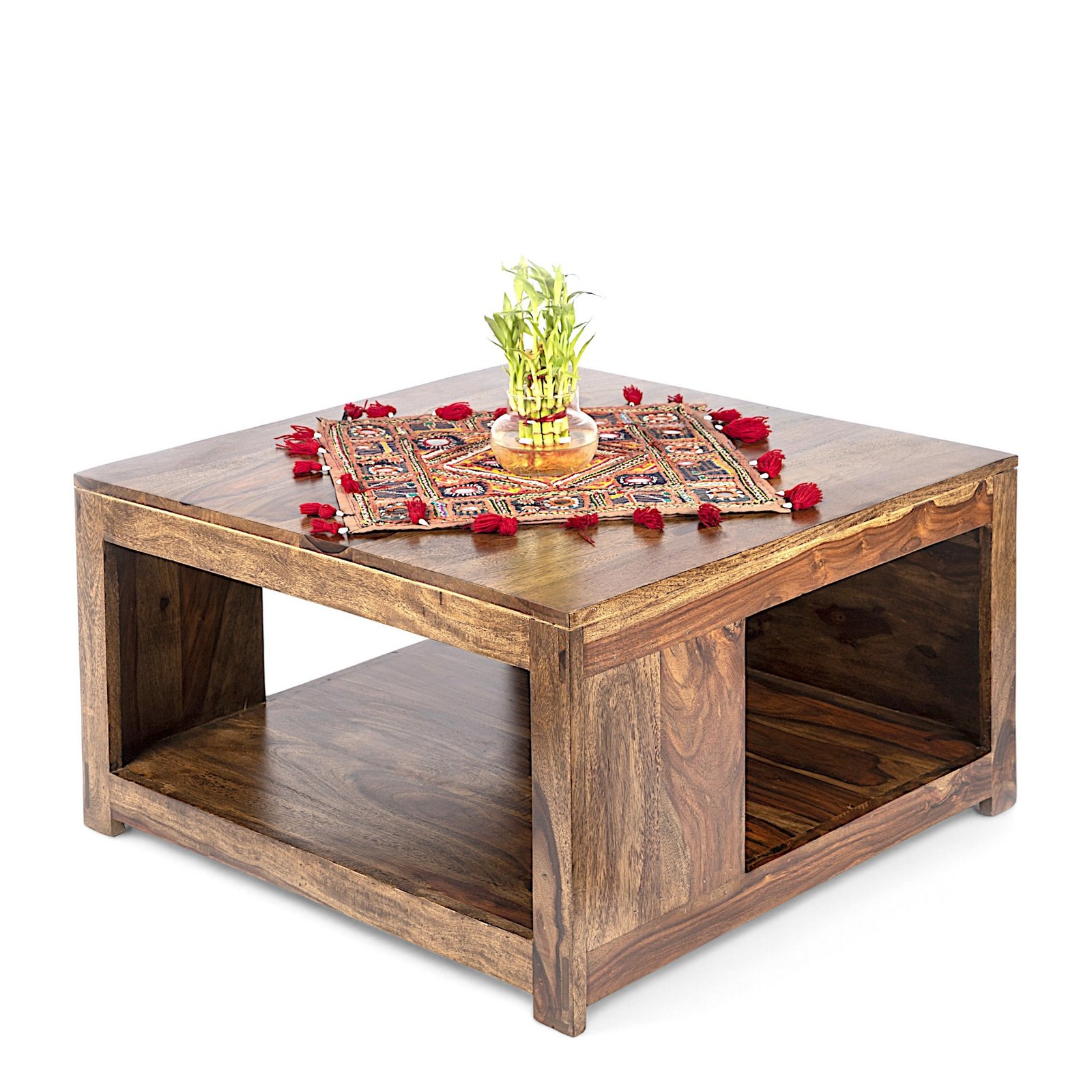 Ikiriya Milan Sheesham Wood Contemporary Square Coffee Table in Teak Finish