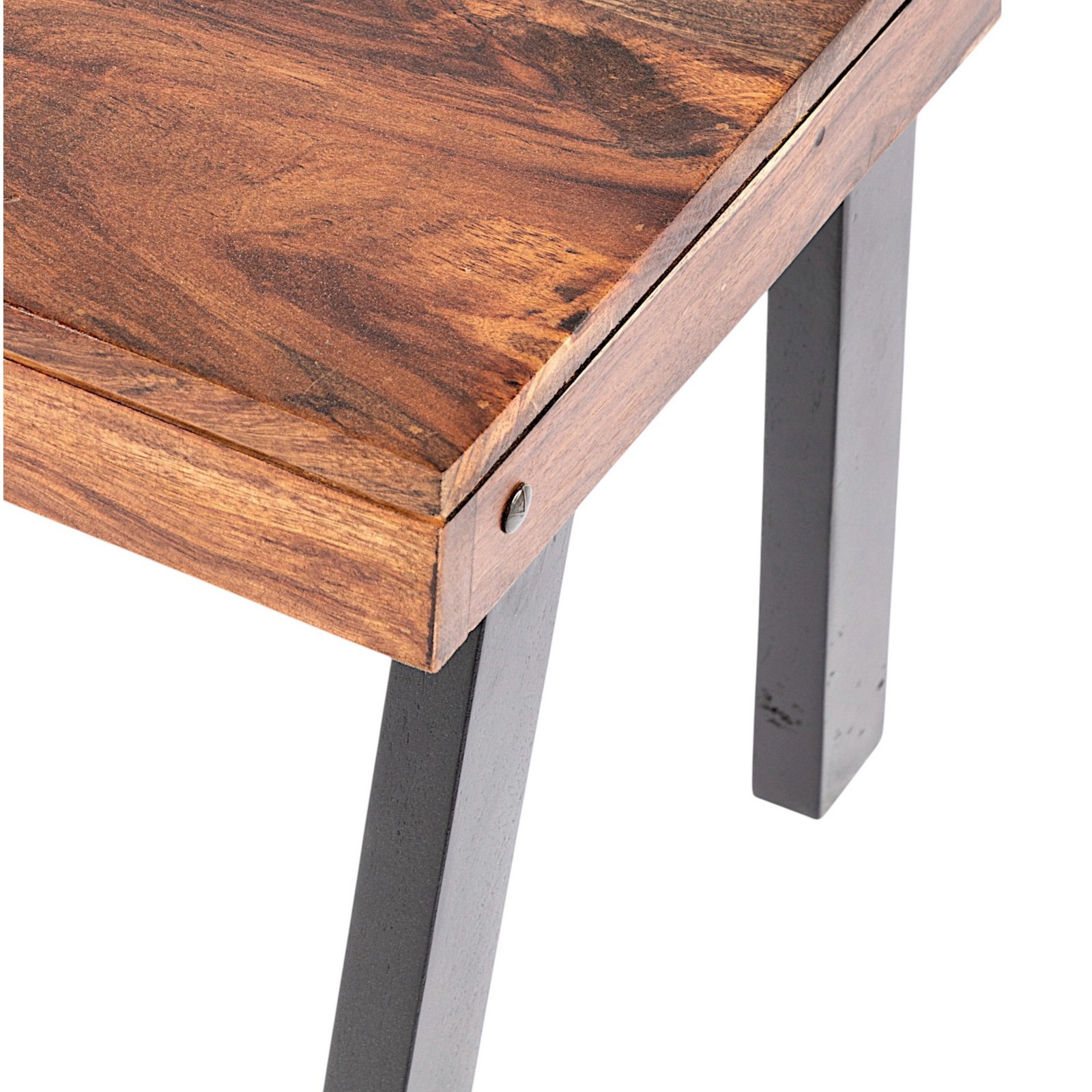 - Crafted from 100% seasoned solid Sheesham wood, this piece features a stunning light-tone teak finish with a bright, semi-gloss shine & Legs have black finish giving it a contrasting dual tone look. Polished with high-quality lacquer and protected by a water-resistant sealer, it combines timeless elegance with exceptional durability, perfect for enhancing any living space.
