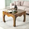 Ikiriya Lyon Sheesham Wood Contemporary Square Coffee Table in Teak Finish