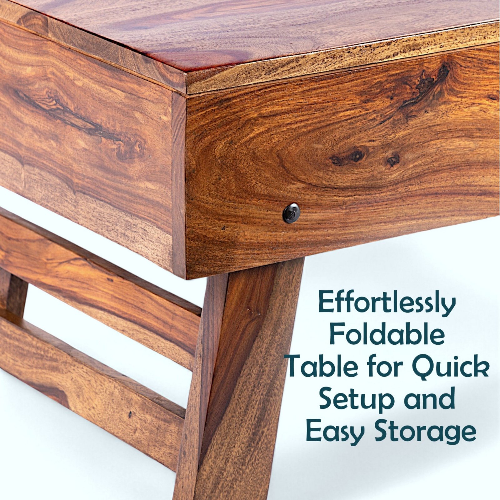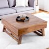 Ikiriya Bradford Sheesham Wood Contemporary Square Foldable Coffee Table in Teak Finish