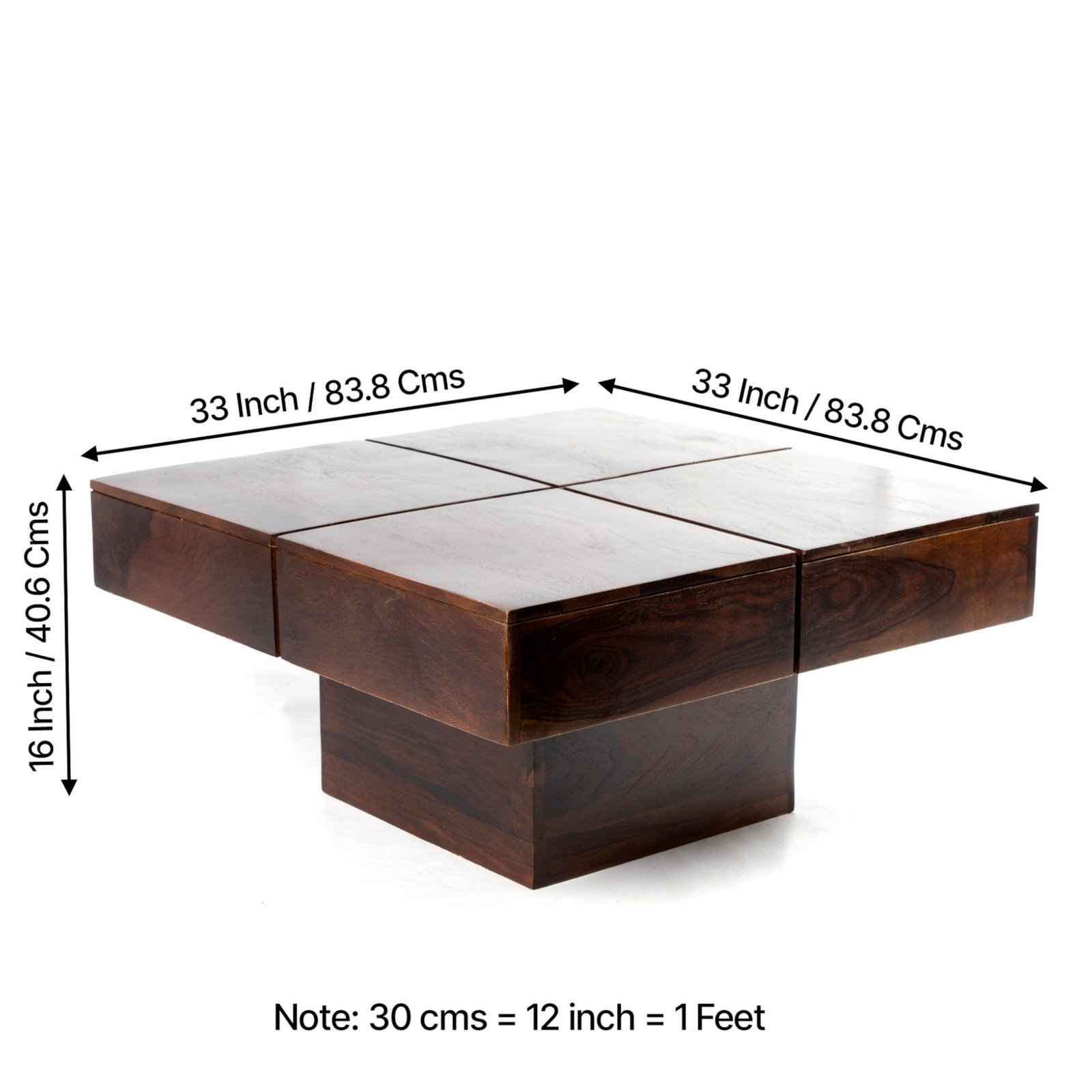 Ikiriya Montreal Sheesham Wood Contemporary Square Coffee Table in Dark Walnut Finish