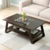 Ikiriya Alison Sheesham Wood Accent Rectangle Coffee Table in Dark Walnut Finish