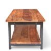 - Crafted from 100% seasoned solid Sheesham wood, this piece boasts a unique Natural Rustic finish with a light tone that enhances its organic charm & Legs have black finish giving it a contrasting dual tone look. The finish offers a bright, smooth appearance with a soft rugged texture for added character, along with a semi-gloss polish that provides a medium shine. Protected with lacquer polish and a water-resistant sealer, it combines rustic elegance with durability, ensuring long-lasting appeal.