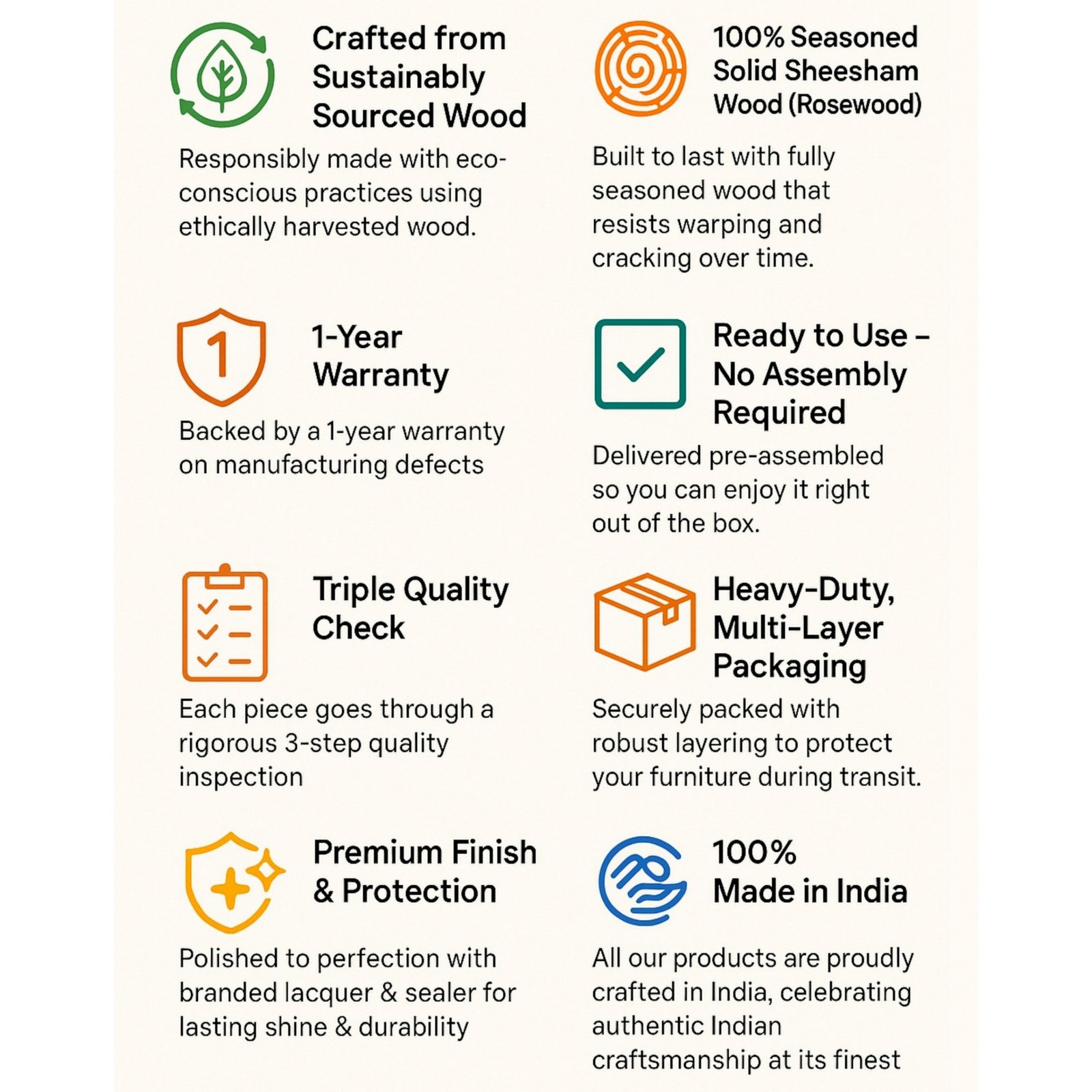. Primary Material: 100% Solid Seasoned Sheesham Wood