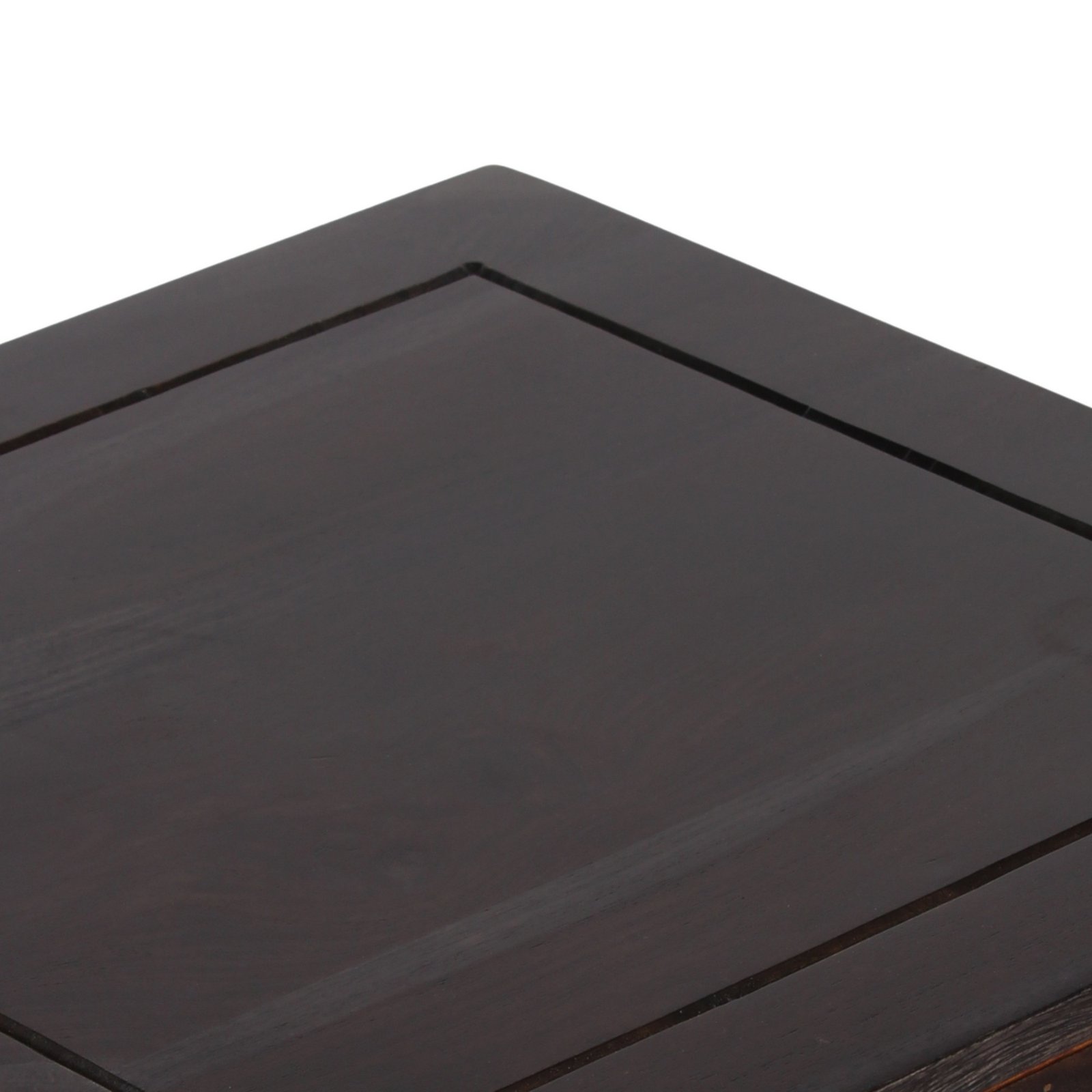 - Made from 100% seasoned solid Sheesham wood, this piece features a striking Dark Mahogany finish that enhances its rich, dark tone. The bright semi-gloss polish provides a medium shine, adding a touch of sophistication to any room. Finished with lacquer polish and a water-resistant protective sealer, it combines timeless beauty with durable protection for long-lasting elegance.