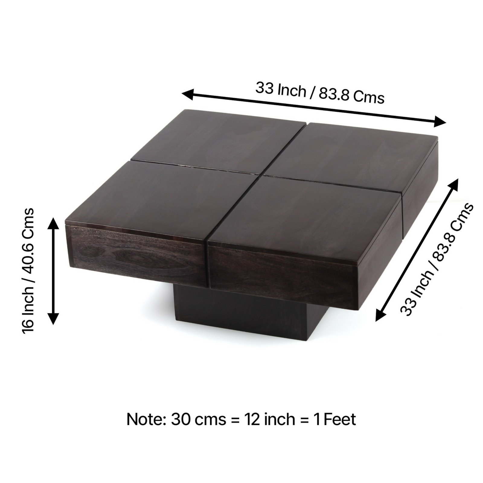 • Ikiriya Montreal Sheesham Wood Contemporary Square Coffee Table in Dark Mahagony Finish