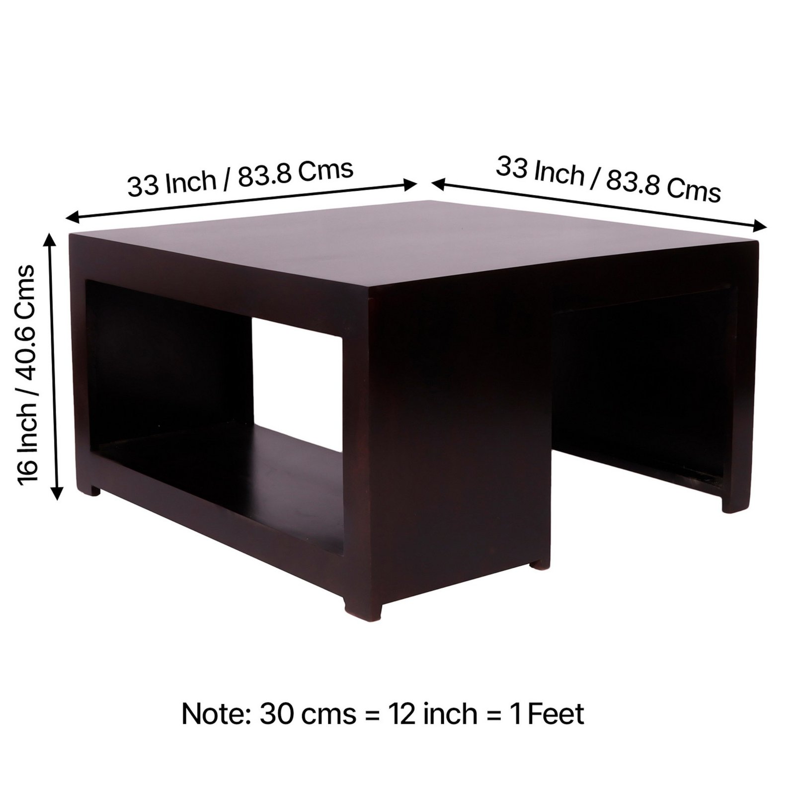 Ikiriya Wayne Sheesham Wood Contemporary Square Coffee Table in Extra Dark Mahagony Finish