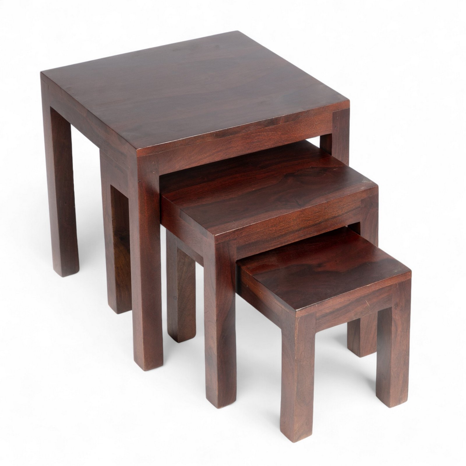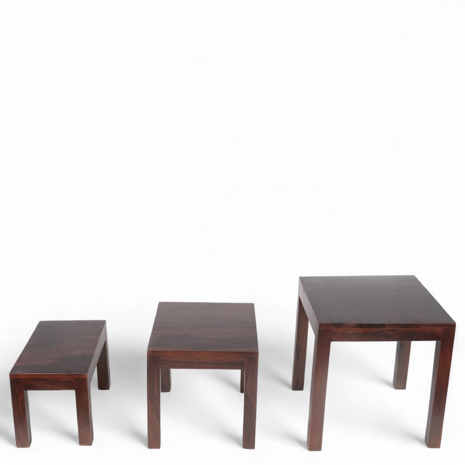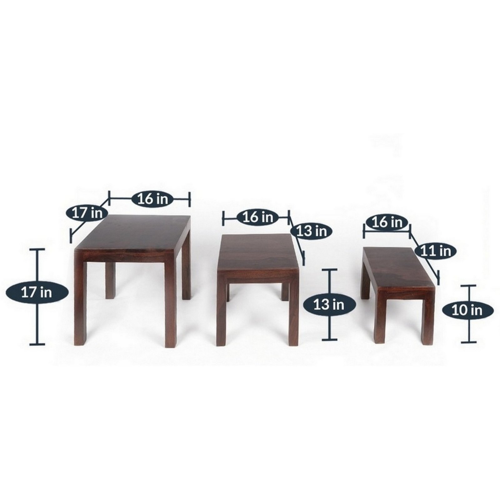 Ikiriya Oakland Sheesham Wood Contemporary Set of 3 Nesting Tables in Dark Walnut Finish