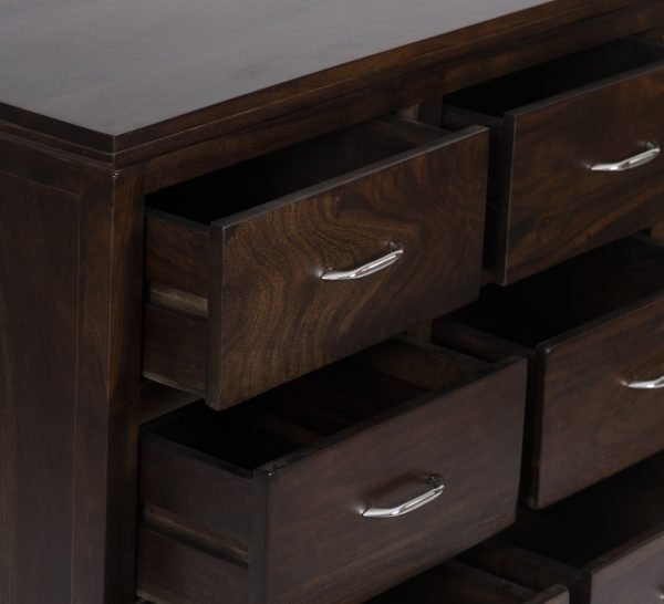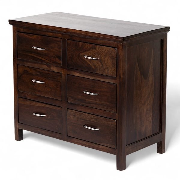 Add a sleek, modern touch to your home with the Ikiriya Contemporary Chest of Drawers. Made from durable Sheesham wood, this piece provides ample storage while maintaining a clean, streamlined look. Perfect for dining rooms, living rooms, bedrooms, or even commercial spaces like caf?s, hotels, and resorts, this chest of drawers is both functional and stylish. Its contemporary design features smooth lines and a rich wood finish, making it a versatile addition to any d?cor. Whether you need extra storage or a statement piece, this chest of drawers offers both practicality and modern elegance, enhancing any room with its sophisticated design.