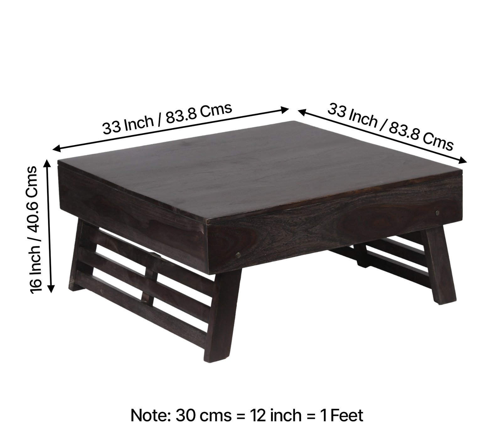 Bradford Sheesham Wood Contemporary Square Foldable Coffee Table in DARK MAHAGONY FINISH