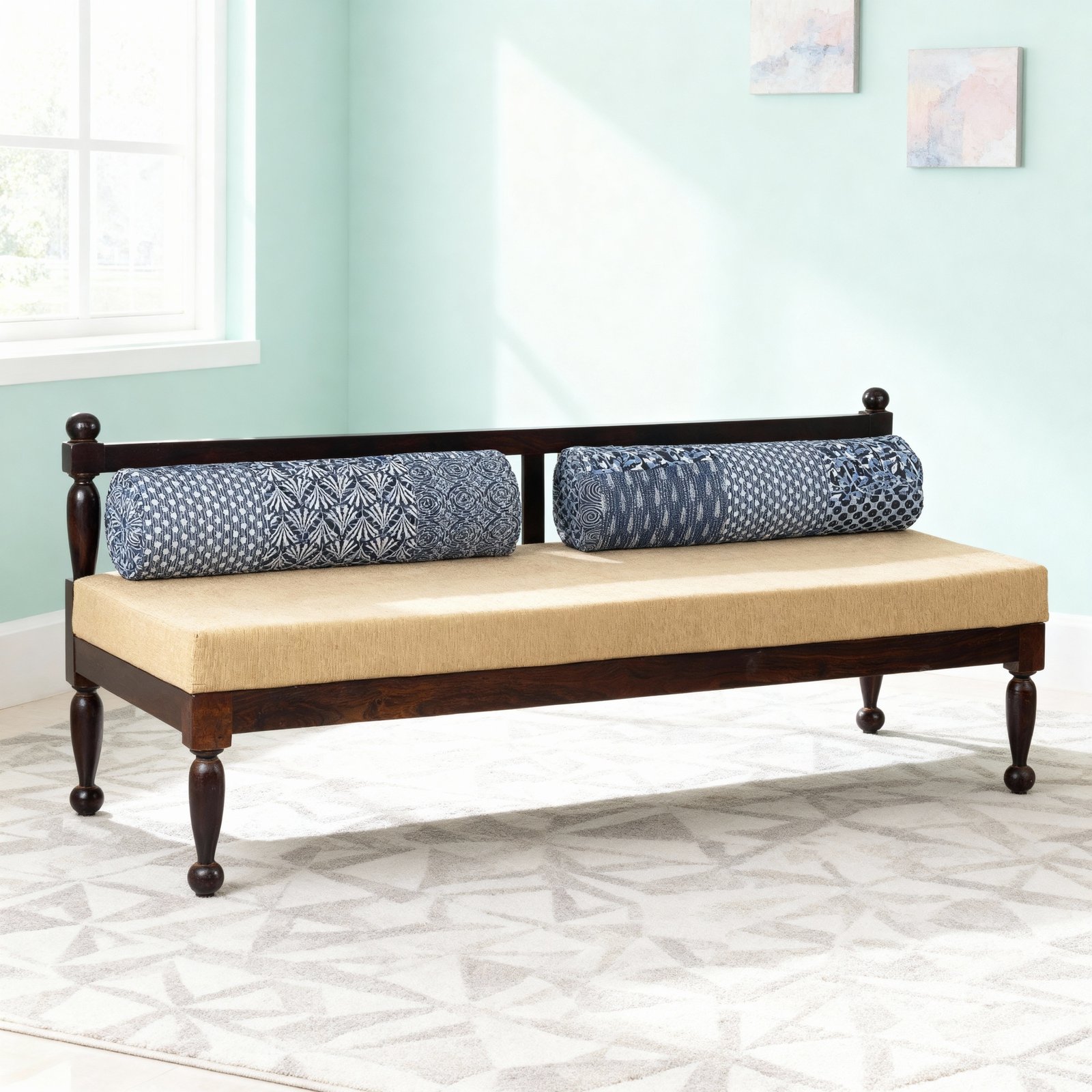 Relax in style with the Ikiriya Mid Century Diwan, a piece that combines elegance and comfort. Upholstered in premium fabric and supported by a Sheesham wood frame, this diwan is perfect for lounging in a dining room, living room, or even an outdoor patio. Its mid-century design adds a vintage touch to any space, making it suitable for both residential and commercial environments such as cafés, hotels, and resorts. With its luxurious comfort and timeless style, this diwan is a must-have for anyone seeking relaxation with a touch of sophistication.