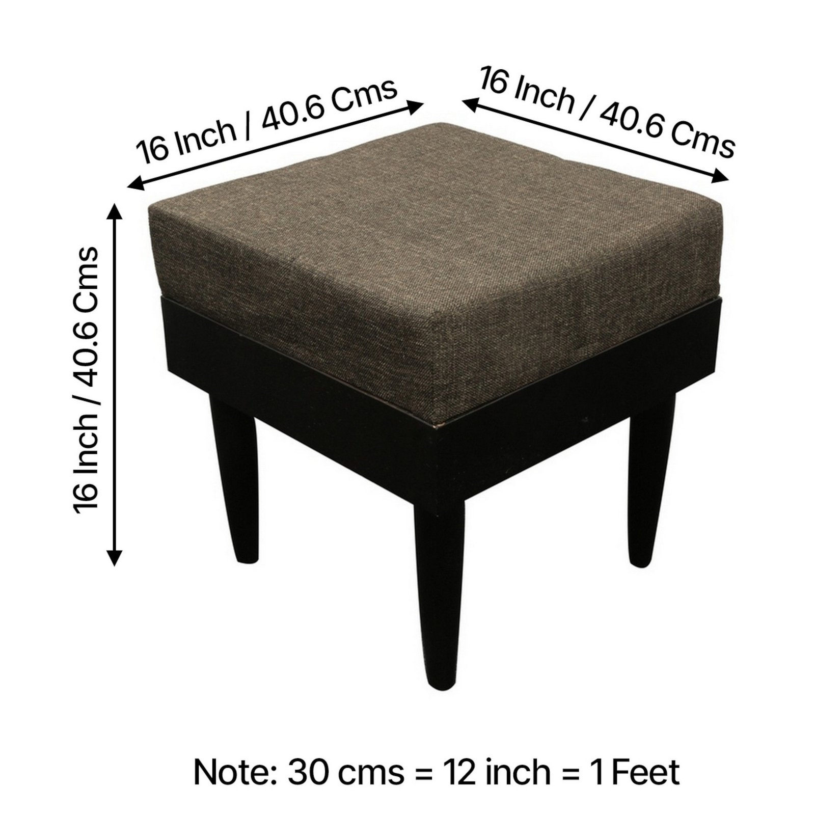 Ikiriya Lisbon Sheesham Wood Accent Square Stool in Jute Brown Upholstery