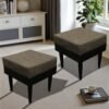 Ikiriya Dayton Sheesham Wood Accent Square Set of 2 Foldable Stools in Iron Grey Velvet Upholstery